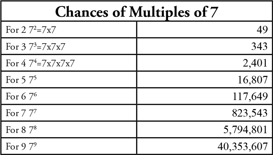 Now, if you have only one rule, you have one chance in seven of getting it right. If you have two rules, and you just do it by random chance, you will have one chance in 49 of getting it right. But now we have more rules.